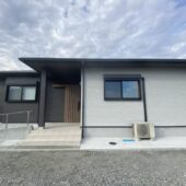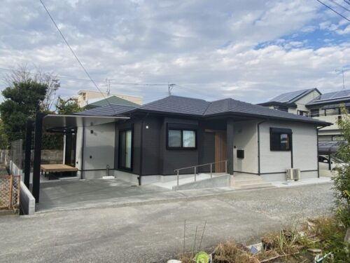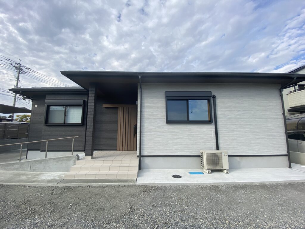 シンプルモダンな外観が目を引く、平家建ての住まい。